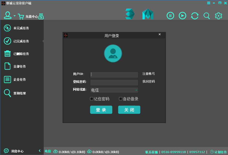 2,輸入賬號密碼,選擇網絡線路,登陸進入客戶端頁面: