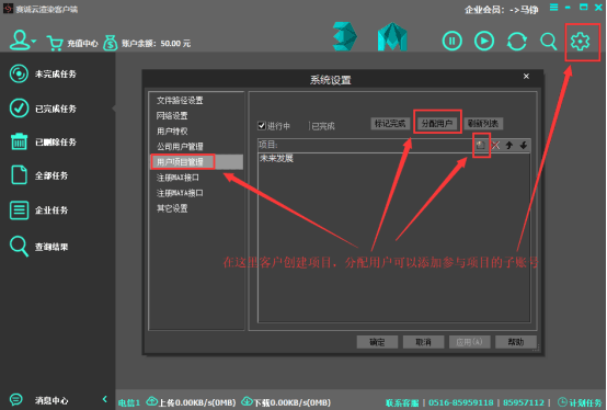注釋:項目名稱可在下圖位置中進行設置,一個項目可以包涵多個鏡頭,并且可以分配給不同的用戶,方便項目統(tǒng)一管理。